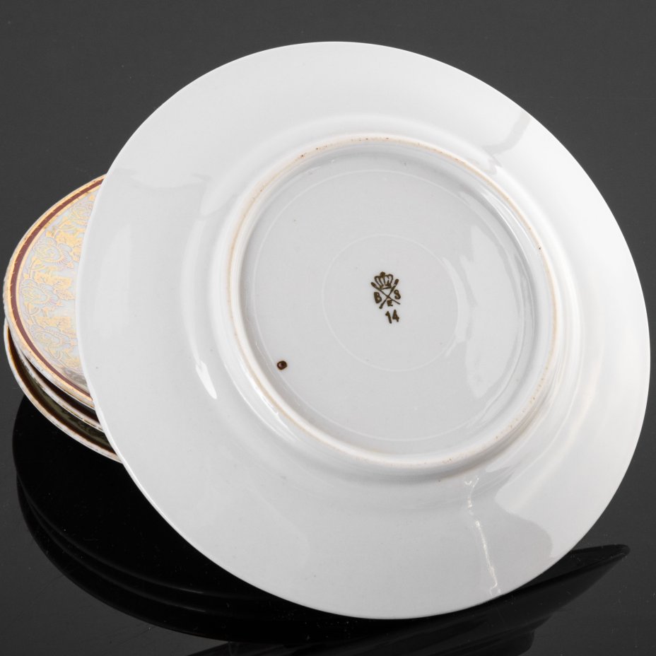 Набор из 4 десертных тарелок с цветочным декором, фарфор, деколь, люстр
