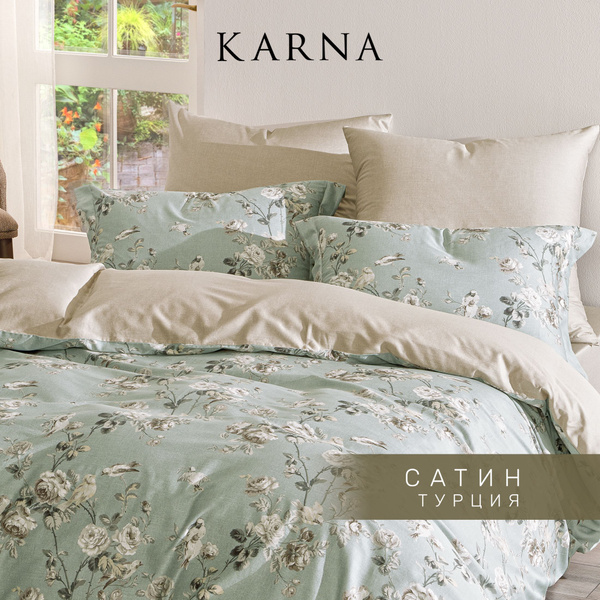 Комплект постельного белья Karna Печатный сатин Евро , наволочки 50x70